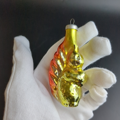 Ёлочная игрушка "Белочка с орешком" из сказки Пушкина "Сказка о Золотом петушке", подвесная, стекло, ручная роспись, винтаж СССР 1960-1980 гг