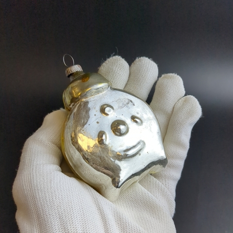 Ёлочная игрушка Будильник, часы на ножках, стекло, подвесная, ручная роспись, винтаж СССР 1950-1980 гг