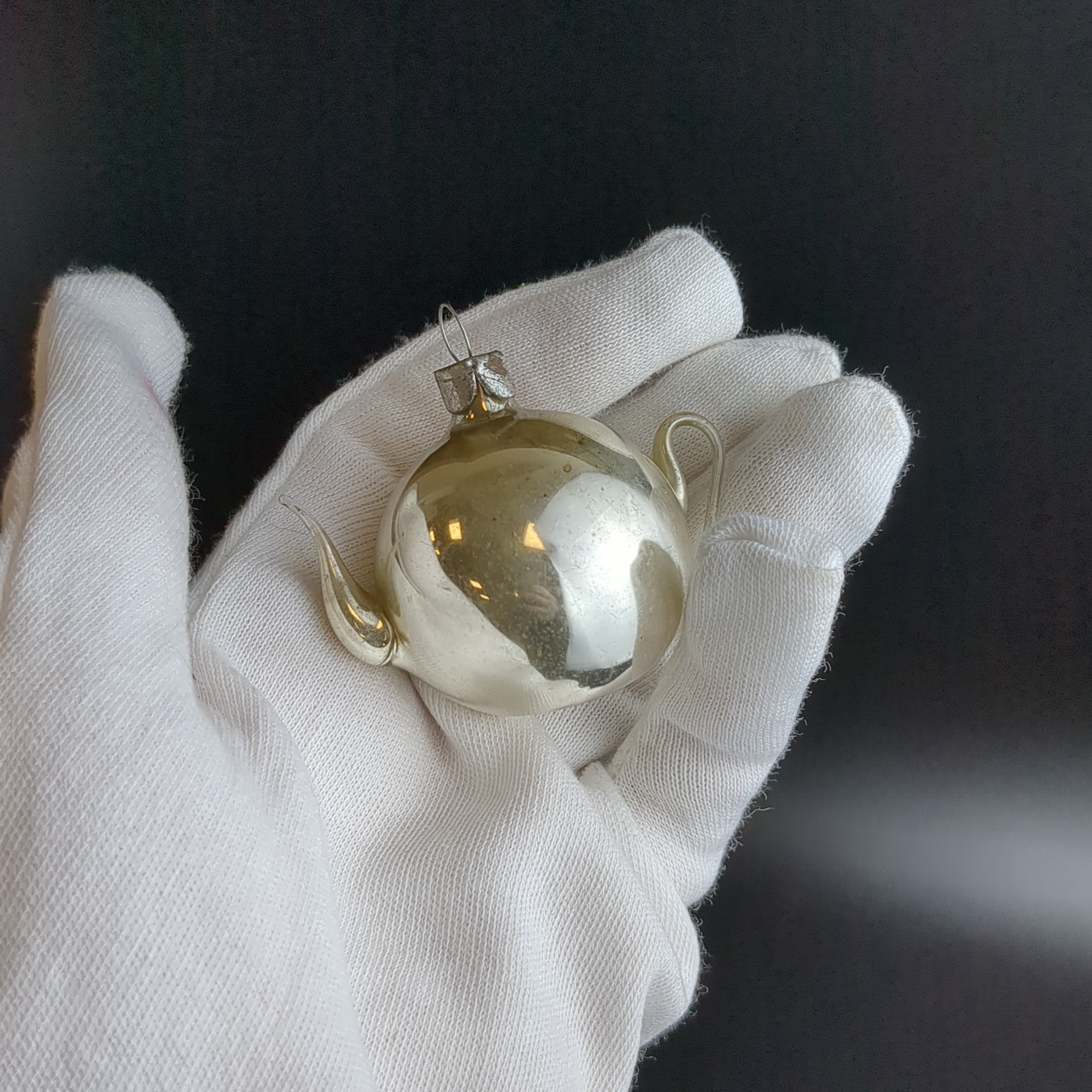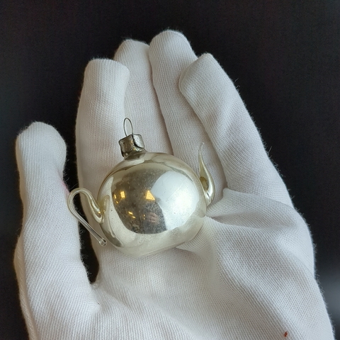 Ёлочная игрушка "Чайник" миниатюрный, стекло тонкое, подвесная, винтаж времён СССР 1960-1980 гг. Советские ёлочные игрушки и украшения. Состояние и комплектация на фото.