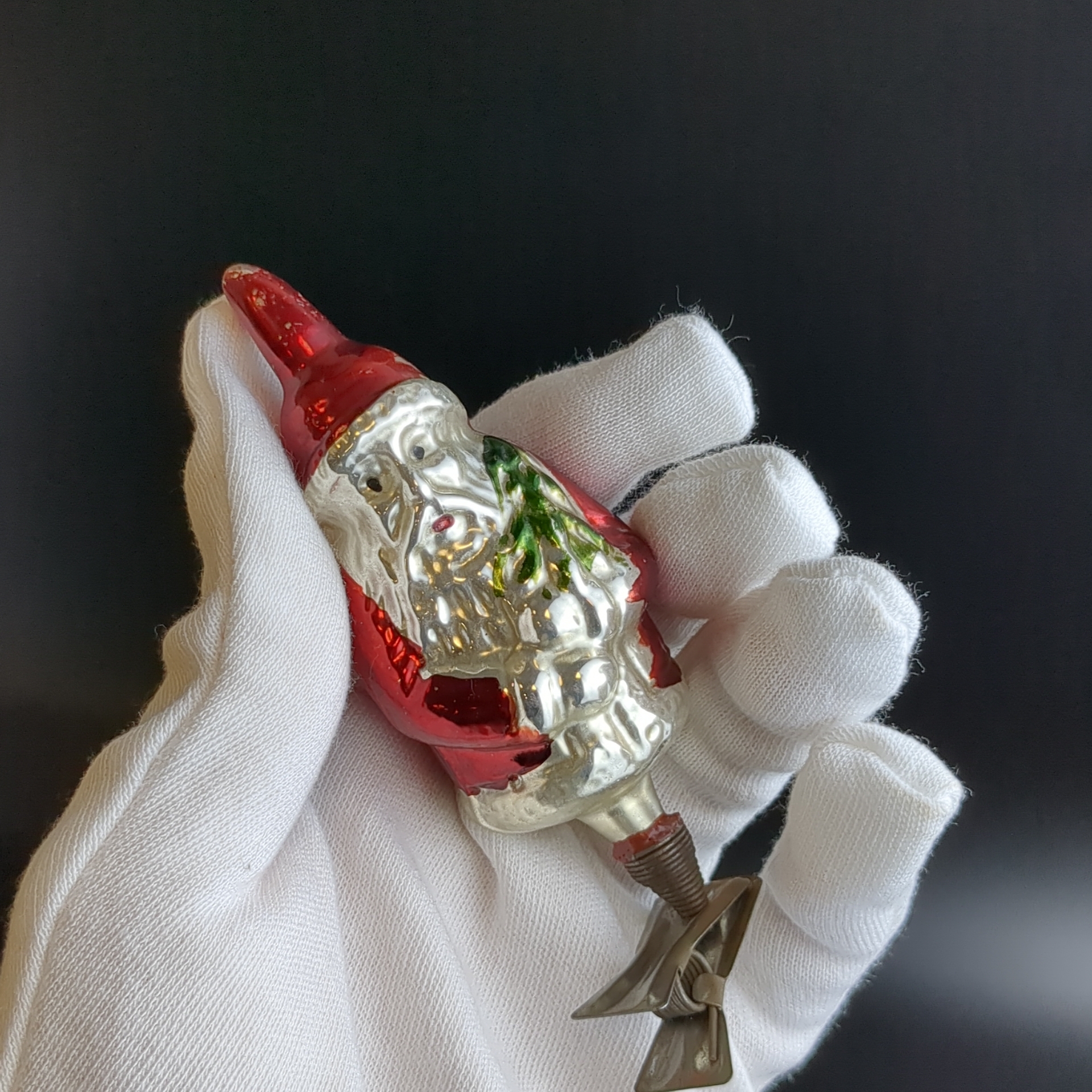 Ёлочная игрушка "Дед Мороз", Санта Клаус, на прищепке с пружиной, 10. 5 см, ГДР, Лауша, Германия винтаж времён СССР 1960-1980 гг. Советские ёлочные игрушки и украшения. Состояние и комплектация на фото.