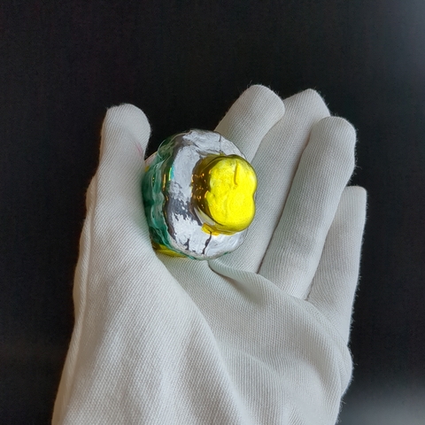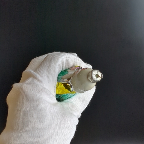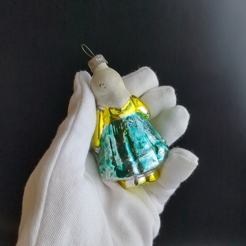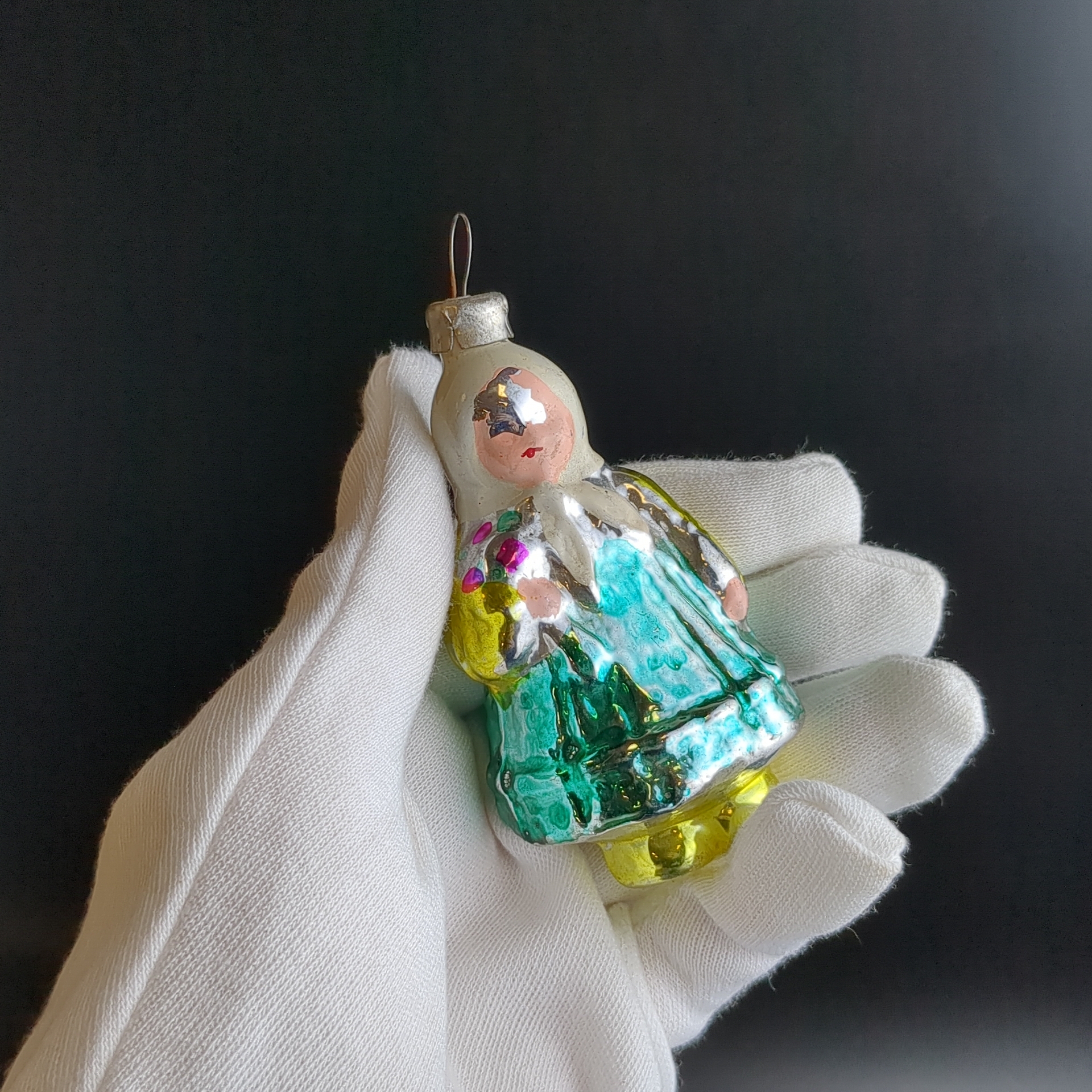 Ёлочная игрушка "Девочка с букетом цветов", подвесная, стекло, ручная роспись, винтаж времён СССР 1960-1980 гг. Советские ёлочные игрушки и украшения. Состояние на фото, небольшой скол под подвесом.