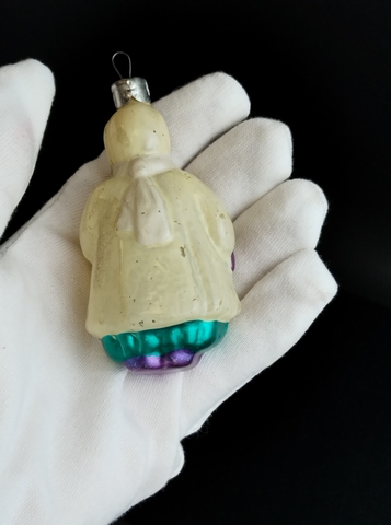 Ёлочная игрушка "Девочка с куклой", подвесная, стекло, ручная роспись, винтаж времён СССР 1960-1980 гг. Советские ёлочные игрушки и украшения. Состояние и комплектация на фото. Винтажные игрушки на ёлку времён СССР. Ёлочные украшения в ретро стиле.