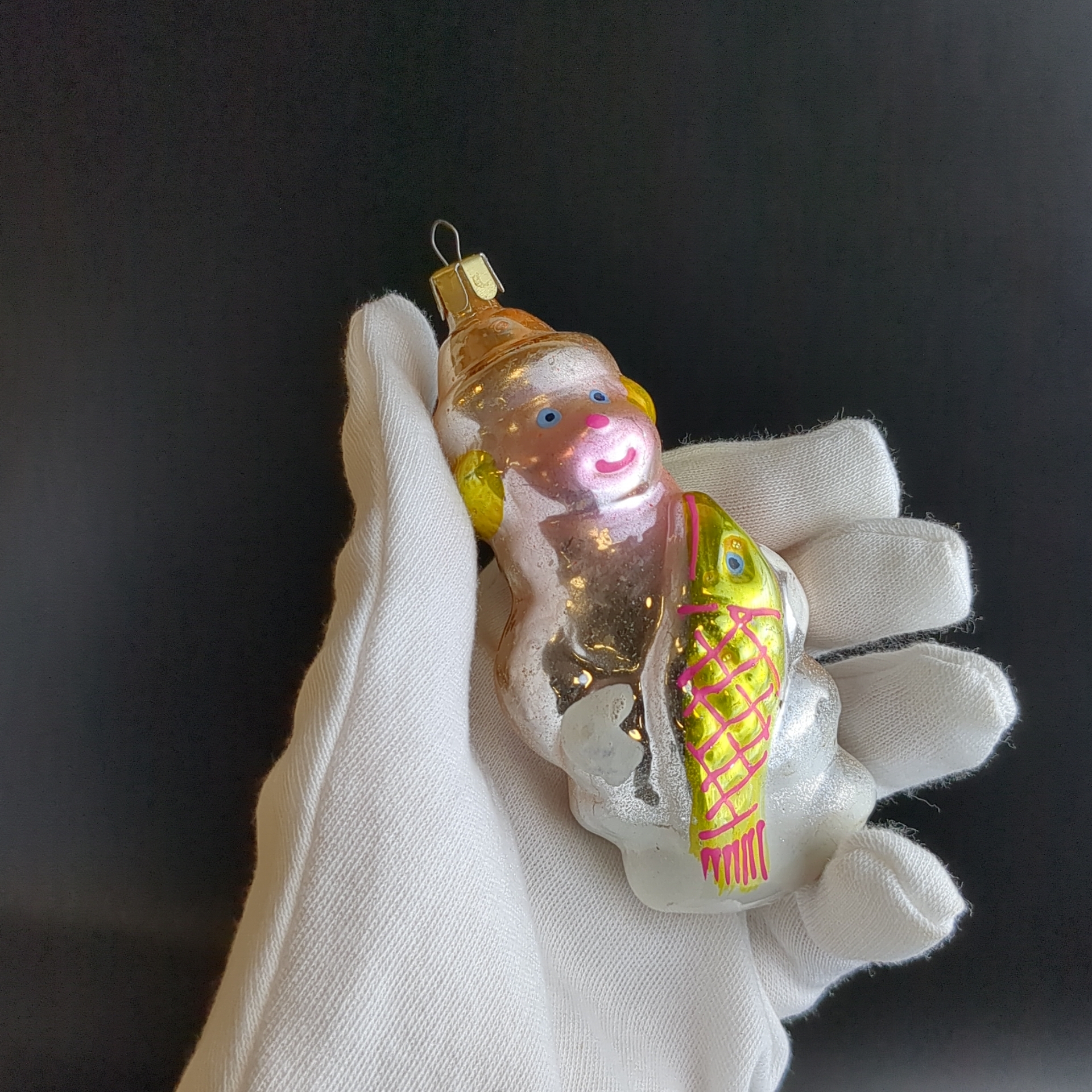 Ёлочная игрушка "Емеля" из сказки "По-щучьему велению", стекло, подвесная, ручная роспись, винтаж времён СССР 1960-1980 гг. Советские ёлочные игрушки и украшения. Состояние и комплектация на фото.