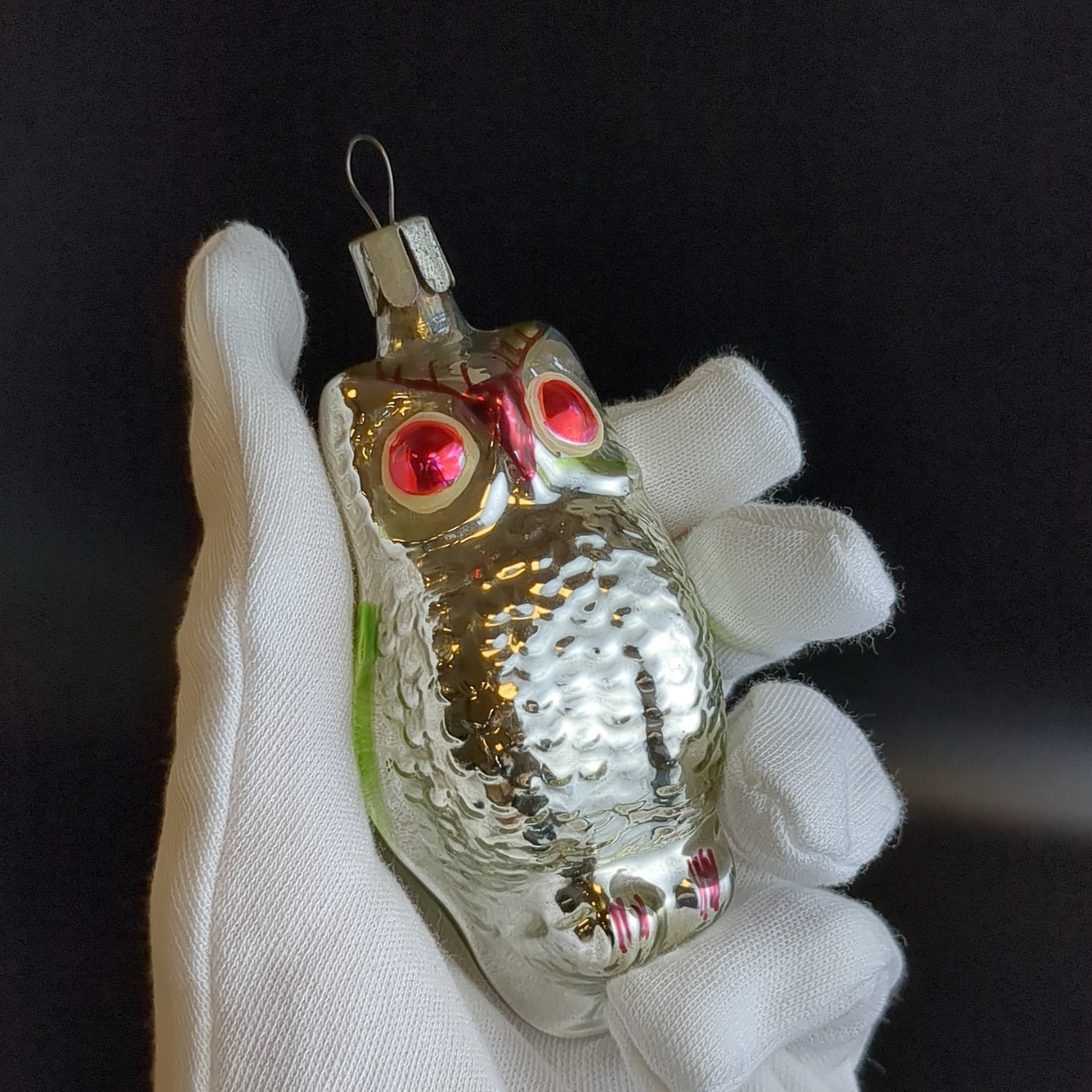Ёлочная игрушка филин, сова, стекло, подвесная, роспись, винтаж СССР 1965-1990 гг