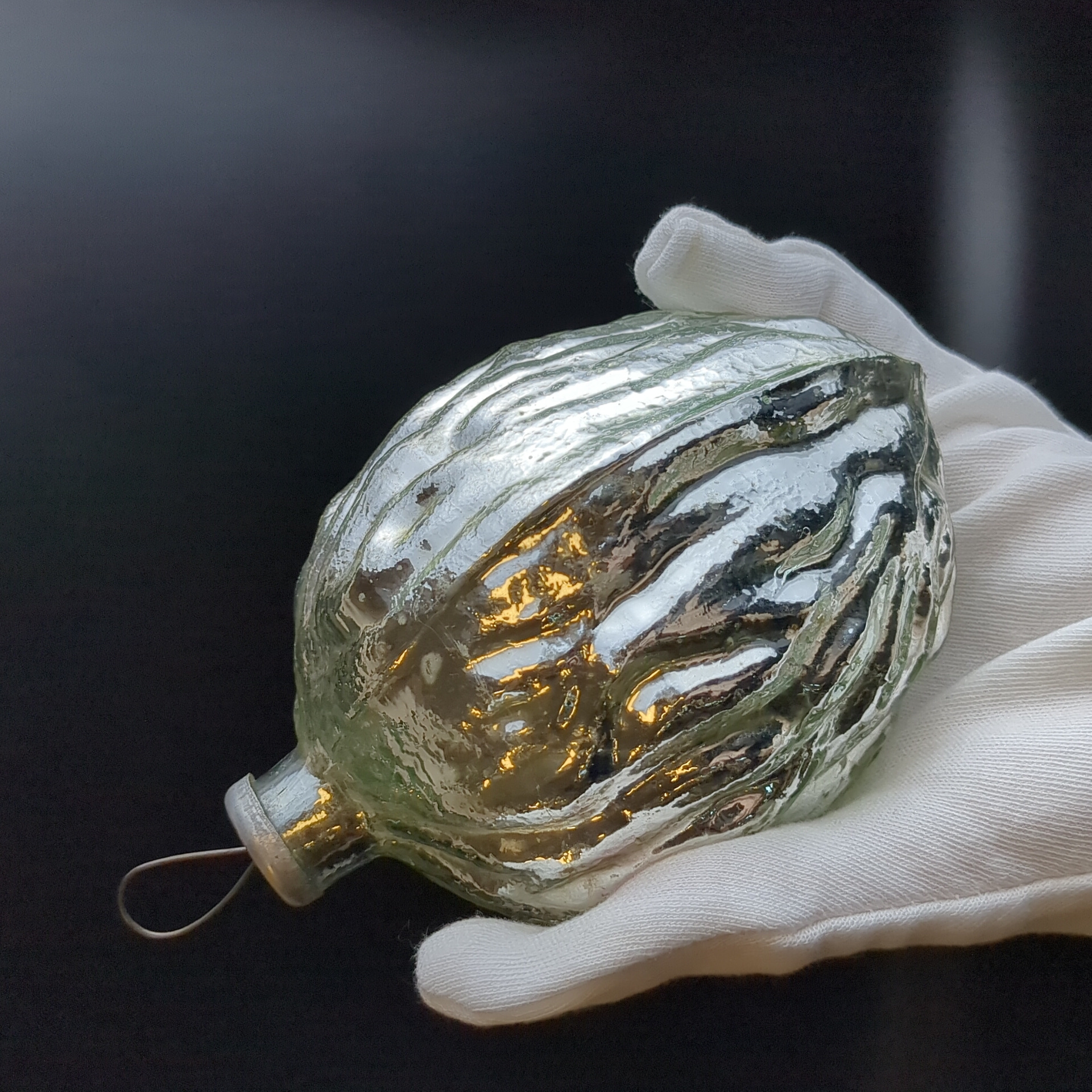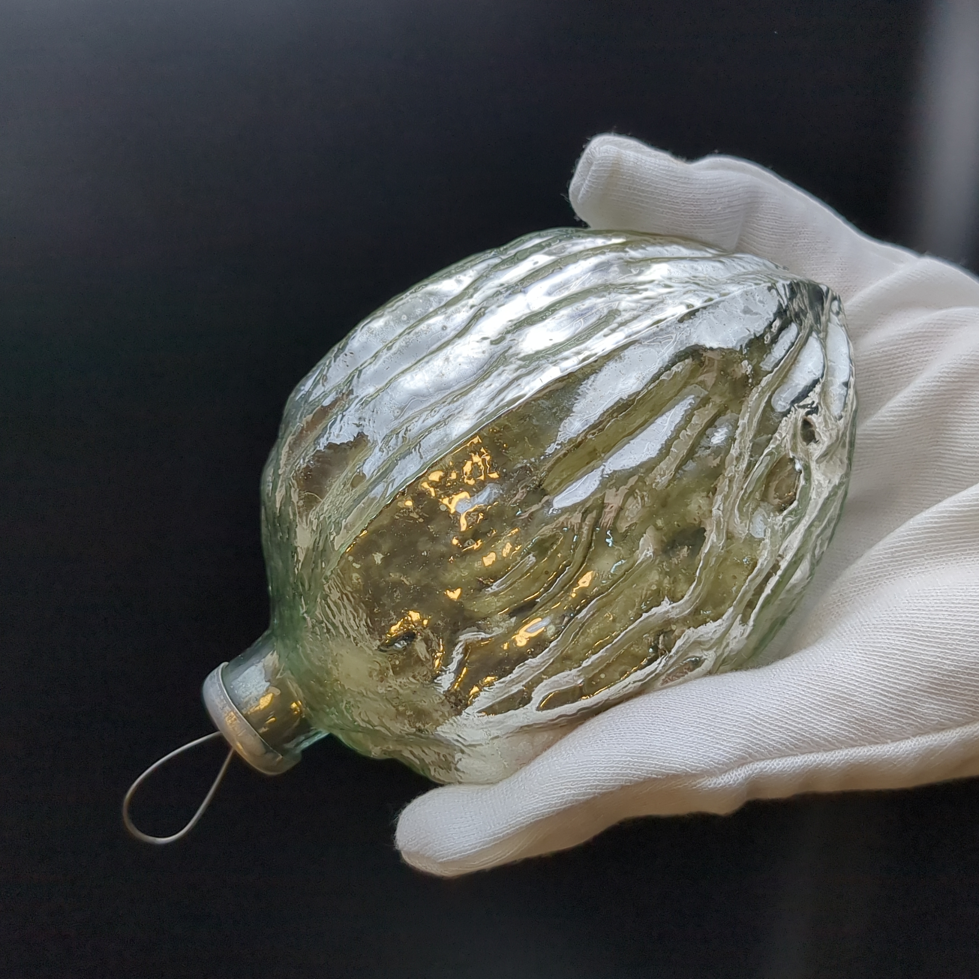 Ёлочная игрушка грецкий орех, гигантская Кремлёвская, высота- 15 см, стекло, винтаж СССР 1960-1980 гг.. Состояние и комплектация на фото. Ёлочные украшения советского времени, детализированная ручная роспись.