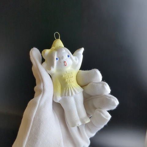Ёлочная игрушка из пенопласта "Девочка фигуристка", 10.5 см, подвесная, ретро, винтаж СССР 1960-1980 гг. Советские ёлочные игрушки и украшения. Состояние на фото.