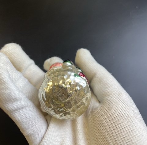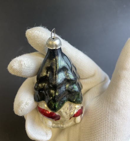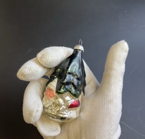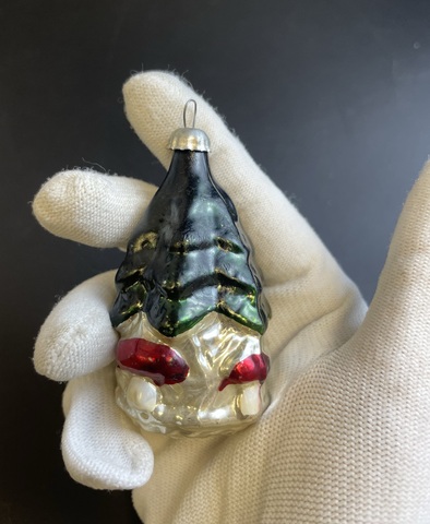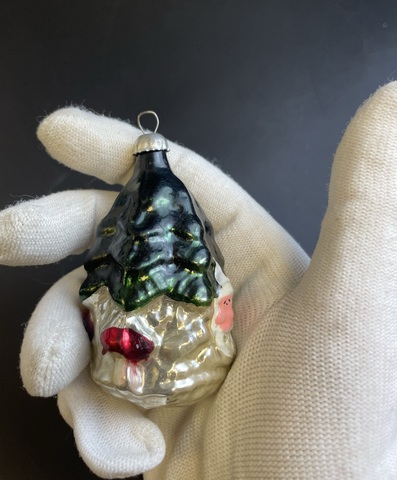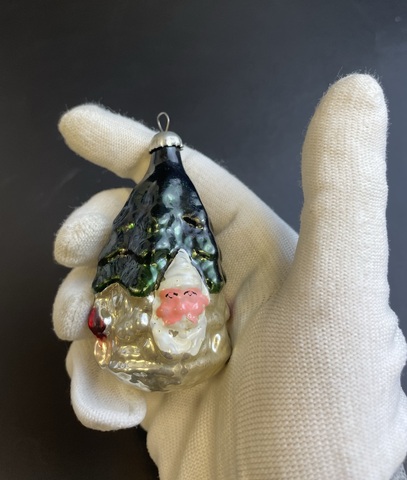 Ёлочная игрушка избушка, изба с Дедом морозом и грибочками, домик в снегу, стекло, подвесная, винтаж СССР 1960-1990 гг