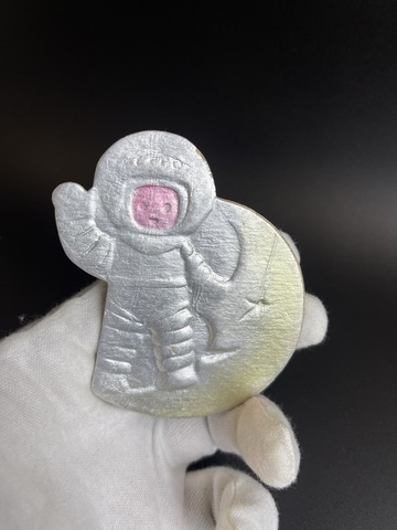 Ёлочная игрушка картонаж "Космонавт на луне", винтажная старинная картонная игрушка СССР 1940-1960 гг