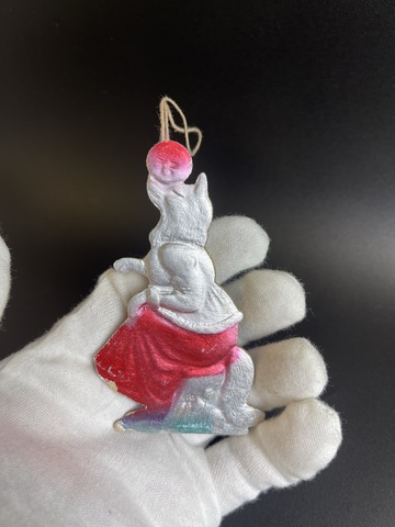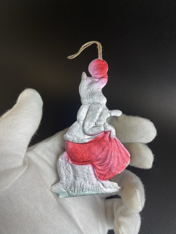 Ёлочная игрушка картонаж лиса с колобком из сказки "Колобок", винтажная старинная картонная игрушка СССР 1940-1960 гг. Каталог. Для коллекционеров.