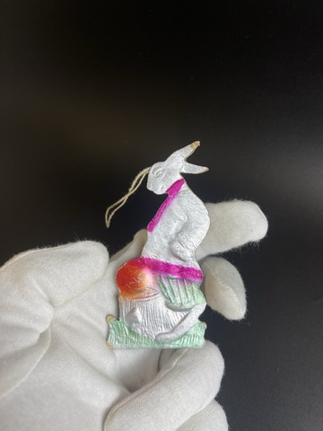 Ёлочная игрушка картонаж заяц и колобок из сказки "Колобок", винтажная старинная картонная игрушка СССР 1940-1960 гг. Каталог. Для коллекционеров.