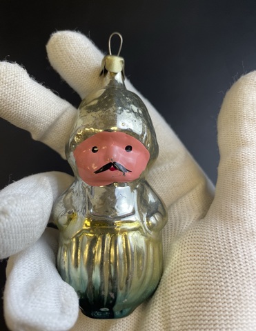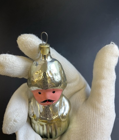 Ёлочная игрушка "Казак" казачок с усами, стекло, роспись, подвесная, винтаж СССР 1960-1990 гг