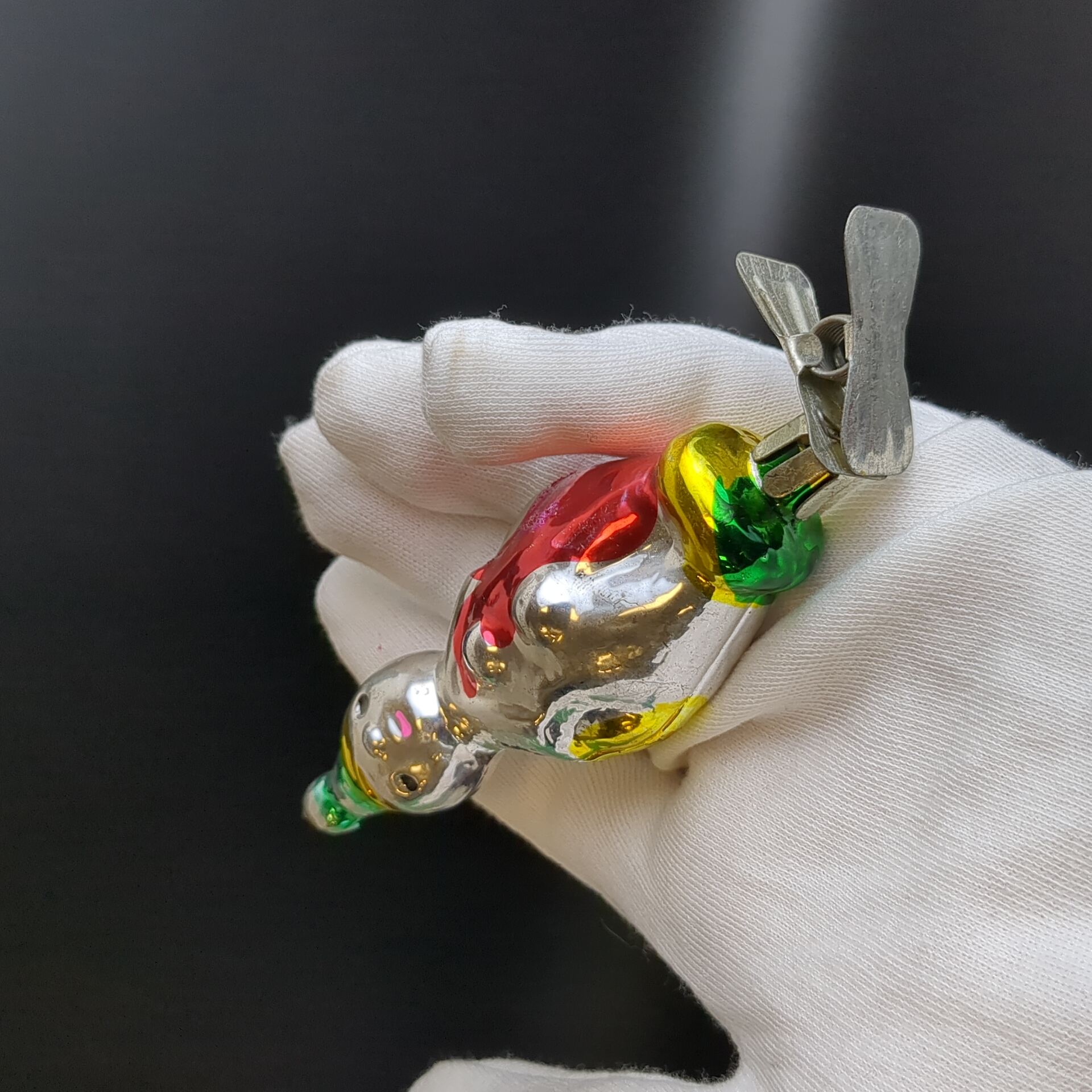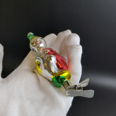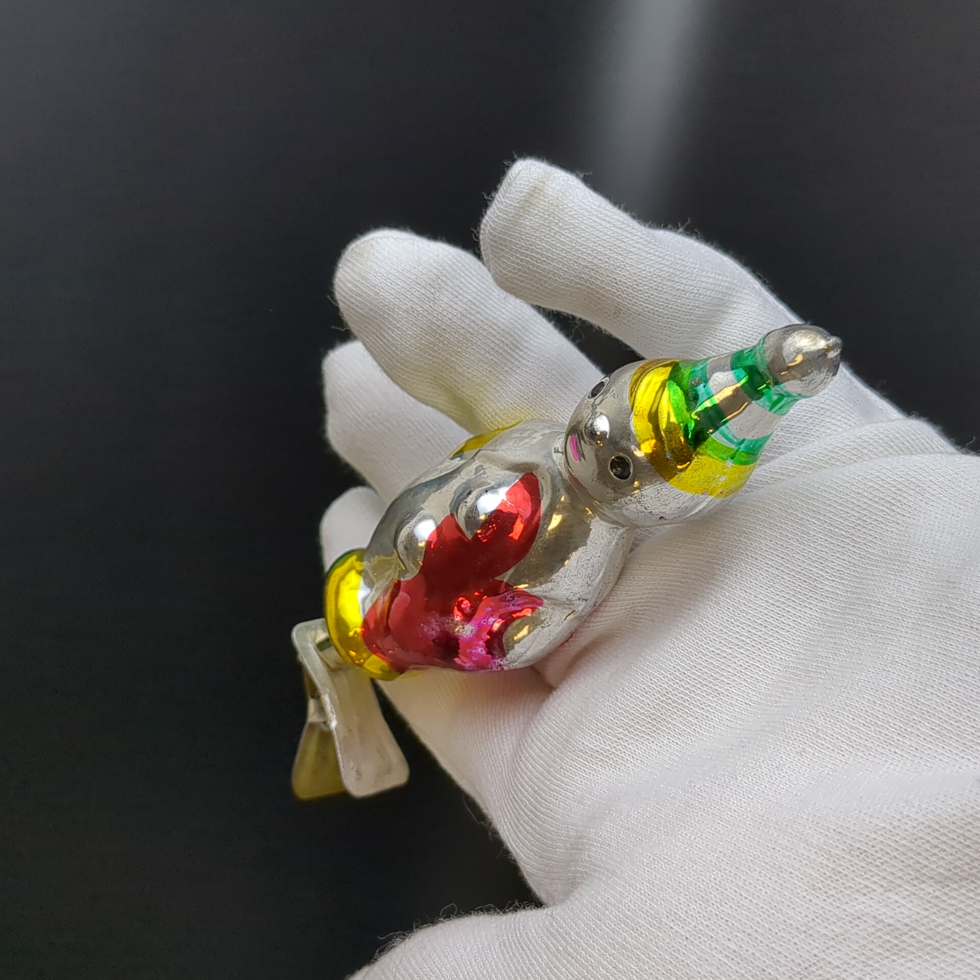 Ёлочная игрушка "Клоун", "Арлекин" на прищепке, стекло, ручная роспись, винтаж времён СССР 1960-1980 гг