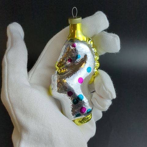 Ёлочная игрушка "Конёк-горбунок" стекло, винтаж, ручная роспись, СССР 1950-1980 гг