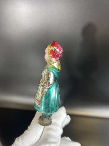 Ёлочная игрушка "Красная Шапочка" на прищепке советская, высота - 11.5 см, СССР 1960-1980 гг