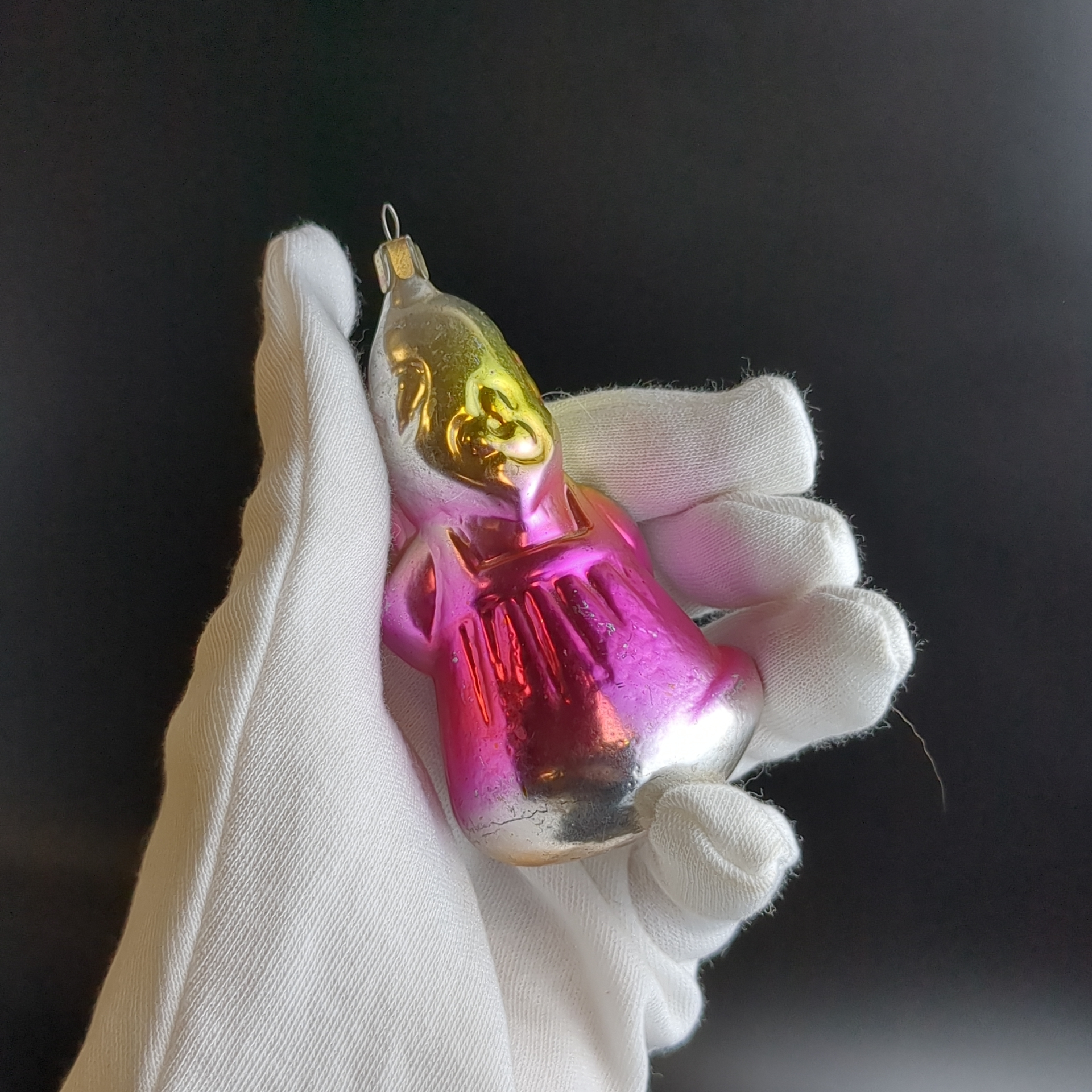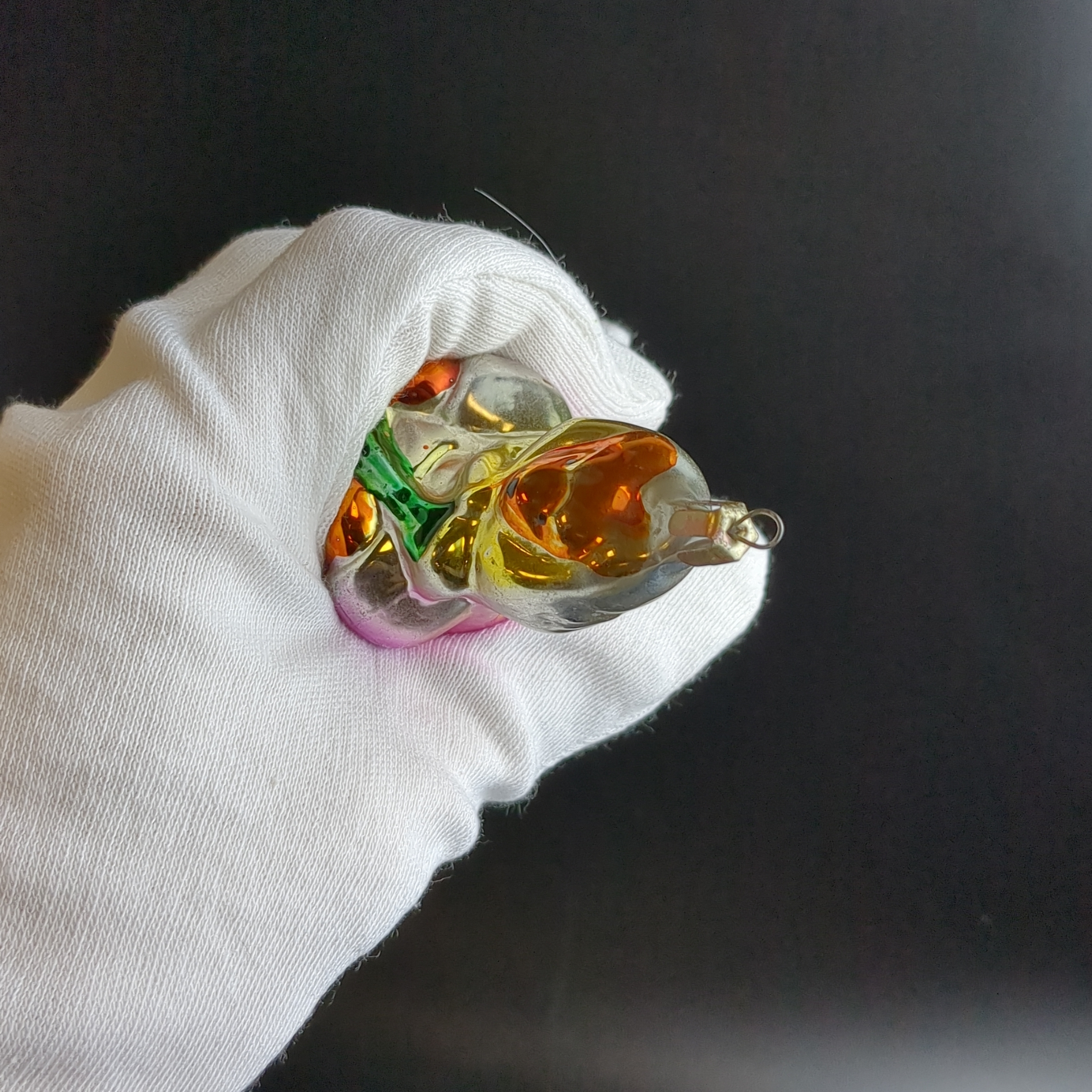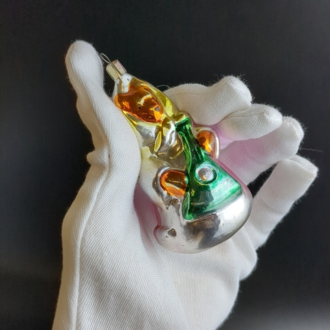 Ёлочная игрушка "Лисичка с балалайкой" стекло, подвесная, ручная роспись, винтаж СССР 1960-1980 гг. Советские ёлочные игрушки и украшения. Состояние на фото.