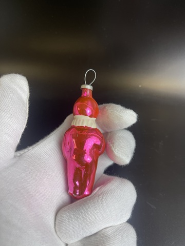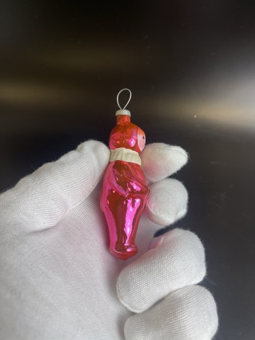Ёлочная игрушка Малыш в комбинезоне, пупс девочка, стекло СССР 1950-1980 гг. Высота- 8 см. Состояние на фото