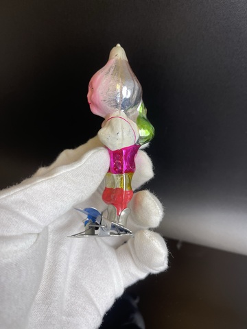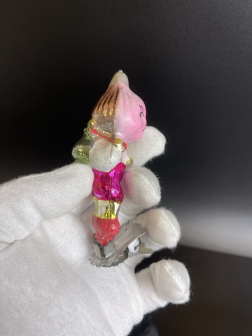 Ёлочная игрушка на прищепке Чипполино с рюкзачком, винтажная стеклянная игрушка на ёлку, скол под прищепкой, СССР 1950-1980 гг. Состояние на фото