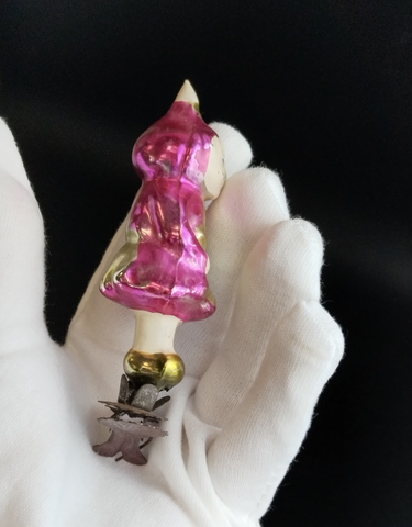 Ёлочная игрушка на прищепке "Девочка Земляничка" сказка Чипполино , 10.5 см, стекло, винтаж СССР 1950-1980 гг