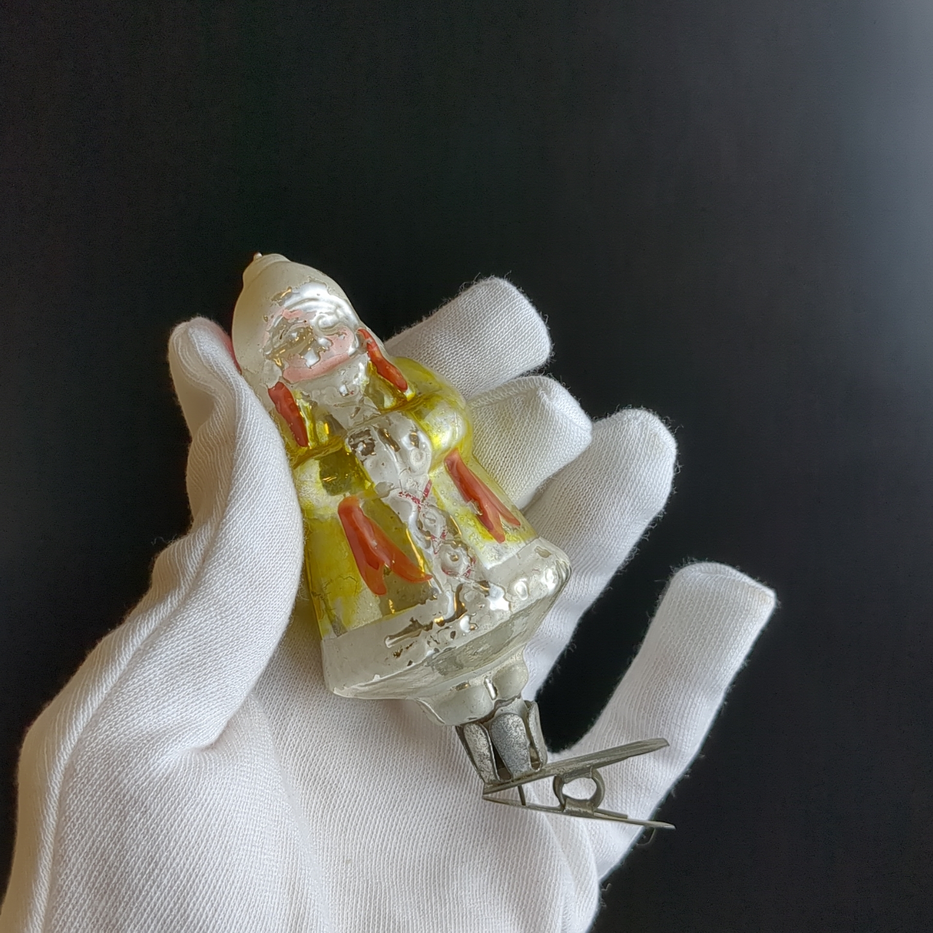 Ёлочная игрушка на прищепке "Марфуша" из сказки "Морозко", стекло, скол внизу, винтажная времен СССР 1970-1980 гг. Советские ёлочные игрушки и украшения. Состояние и комплектация на фото.