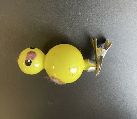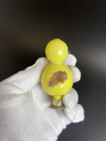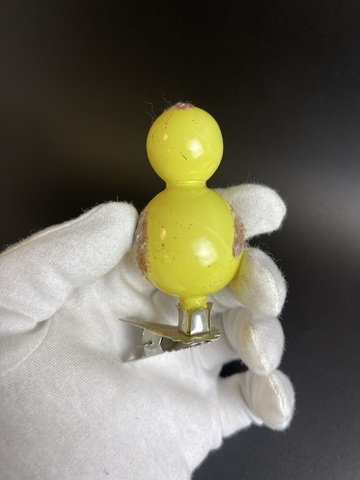 Ёлочная игрушка на прищепке "Цыпленок", стекло, винтаж СССР 1950-1980 гг. Высота- 9.5 см. Состояние на фото