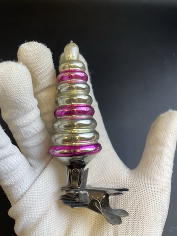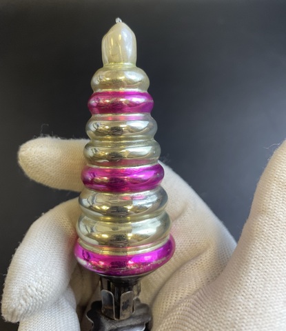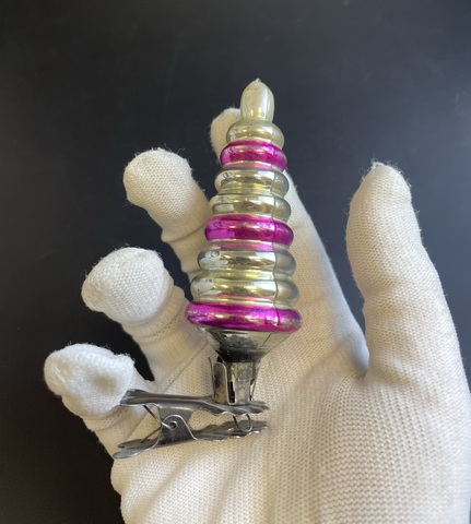 Ёлочная игрушка "Пирамидка" на прищепке, стекло, роспись, винтаж СССР 1960-1990 гг