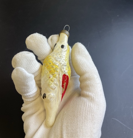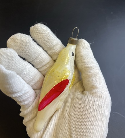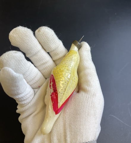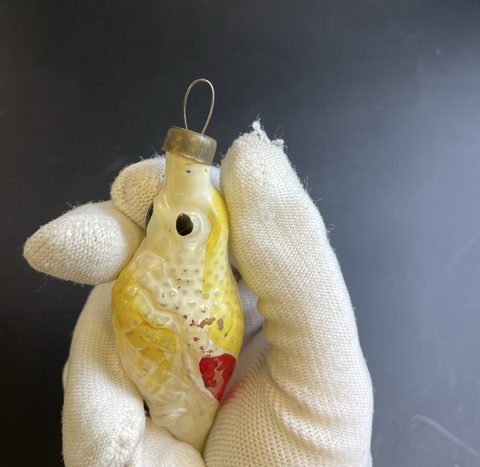 Ёлочная игрушка "Попугай" стекло, роспись ручная, подвесная, винтаж СССР 1960-1980 гг