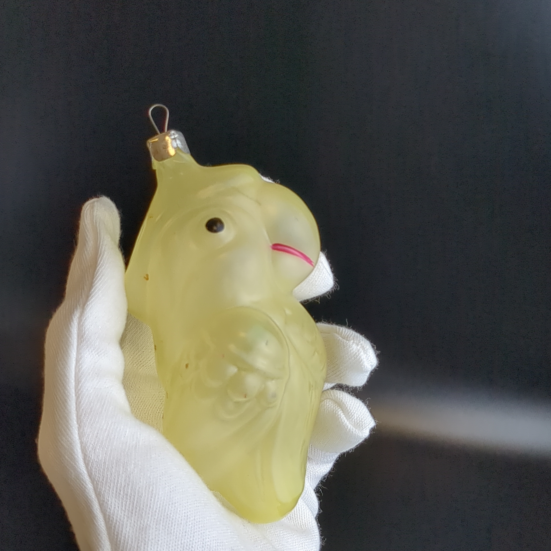 Ёлочная игрушка попугай, стекло, ручная роспись, матовый, подвесная винтажная игрушка СССР 1965-1990 гг. Ёлочные украшения советского времени. Стеклянные ёлочные игрушки. Состояние и комплектация на фото