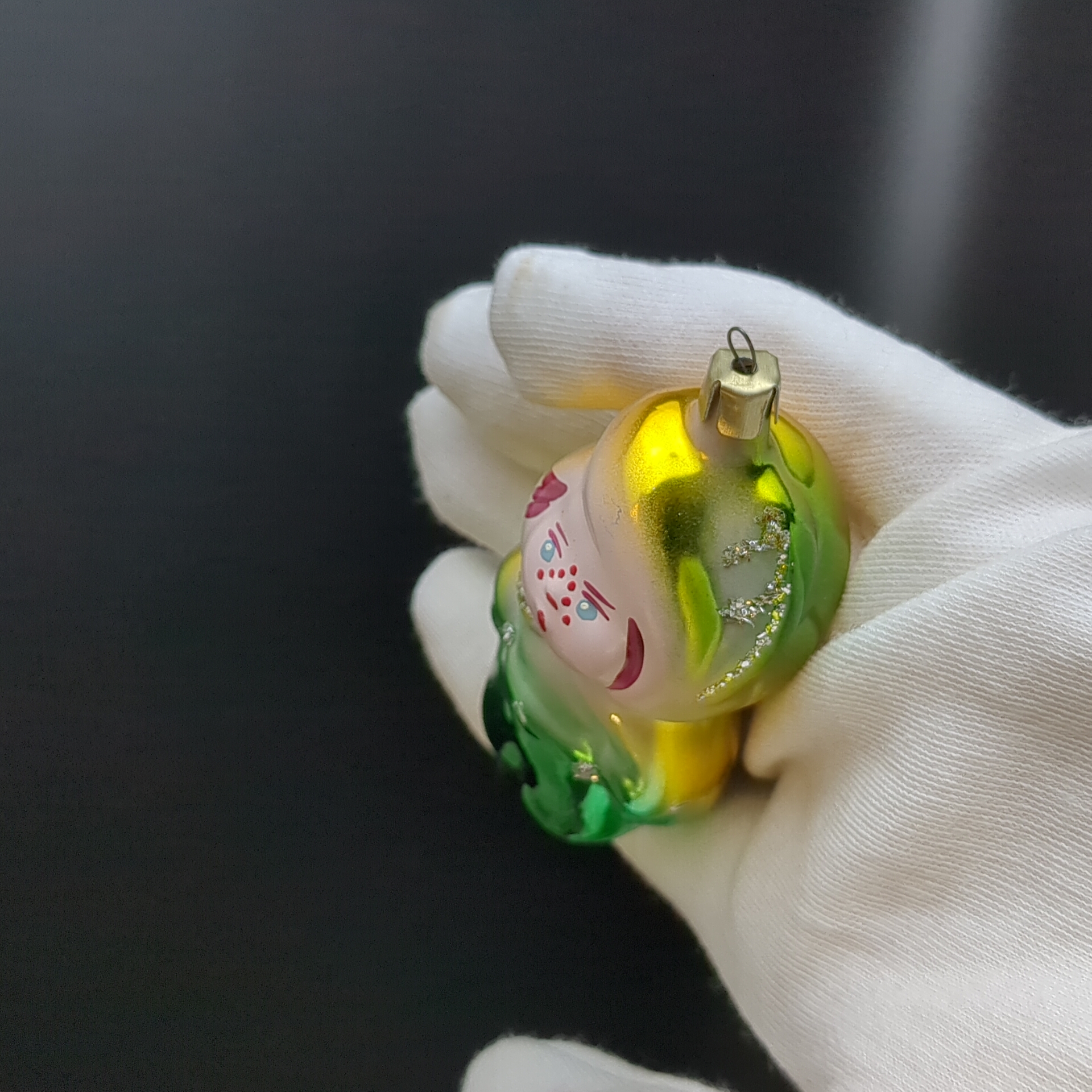 Ёлочная игрушка "Принц" из набора "Хрустальный башмачок", стекло, подвесная, ручная роспись, винтаж 1970-1980 гг