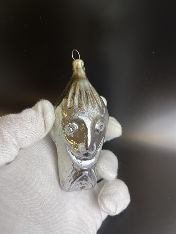 Ёлочная игрушка РЕДКАЯ "Двуликий", "Дровосек", "Голова клоуна", 11 см, стекло СССР 1950-1980 гг. Состояние на фото