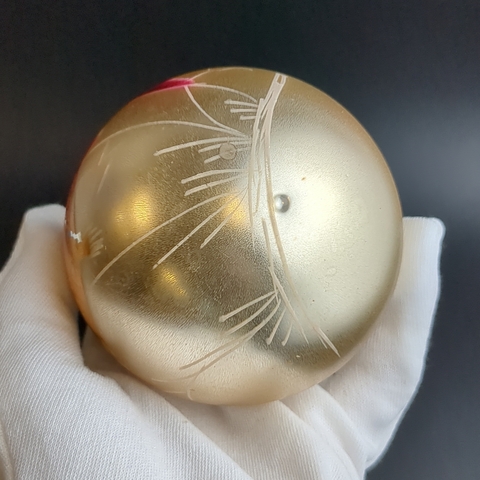 Ёлочная игрушка шар стекло, подвесной, ручная роспись "Золотая рыбка", d-7.5 см, яркий, винтаж СССР 1970-1980 гг