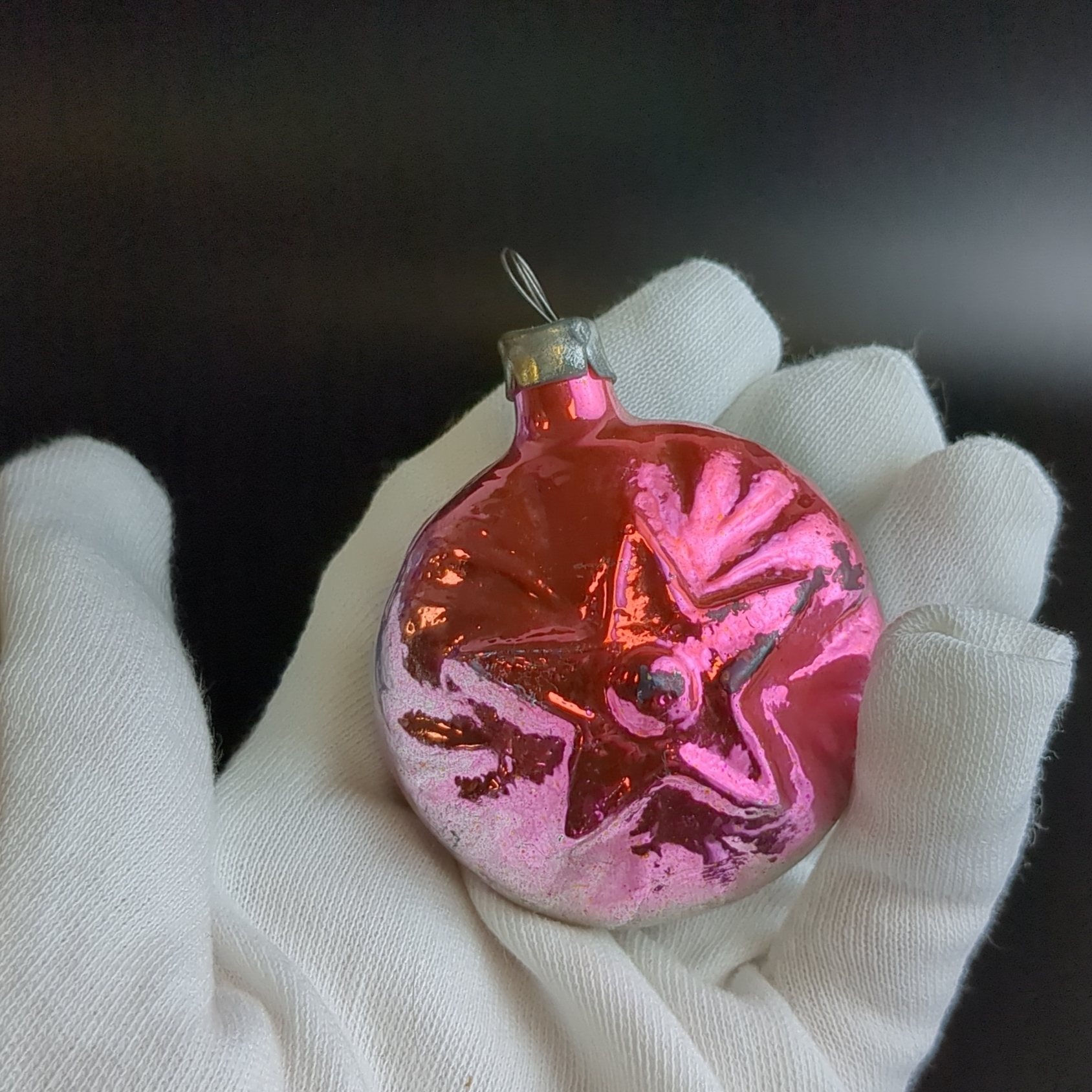 Ёлочная игрушка шарик агитация, "звезда", стекло, подвесная, роспись ручная винтаж СССР 1950-1980 гг. Состояние и комплектация на фото. Ёлочные украшения советского времени, детализированная ручная роспись.