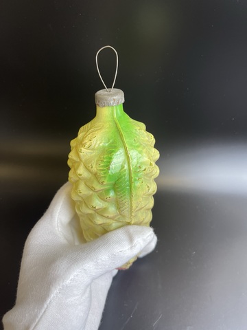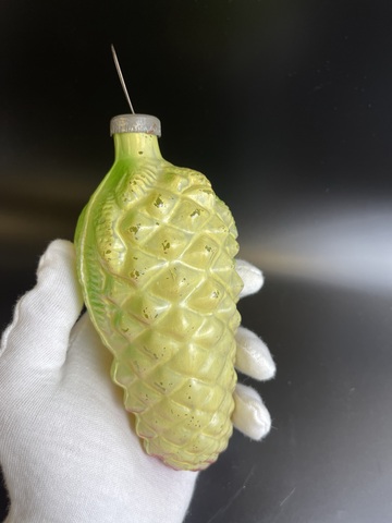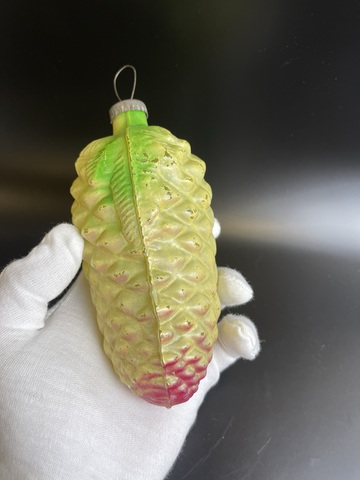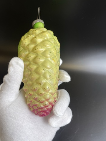 Ёлочная игрушка "Шишка" Кремлевская гигант, длина с подвесом - 20 см, толстое стекло, рельеф, редкая! СССР 1930-1950 гг. Состояние на фото