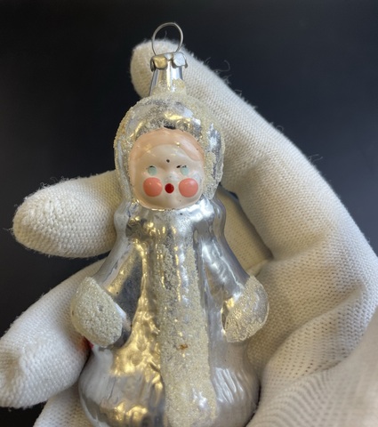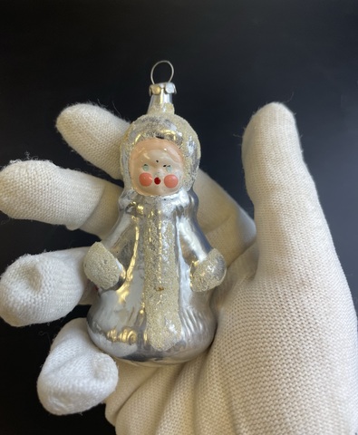 Ёлочная игрушка "Снегурочка" стекло, роспись ручная, подвесная, винтаж СССР 1960-1980 гг