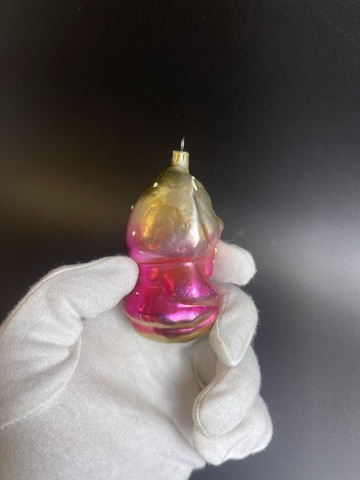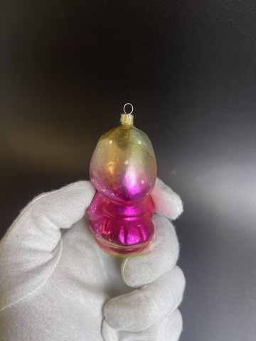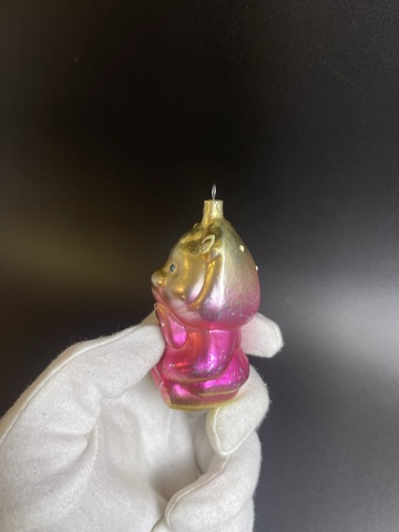 Ёлочная игрушка стекло "Медведица в платочке" из серии цирк, винтаж СССР 1960-1980 гг. Высота - 9 см. Состояние на фото