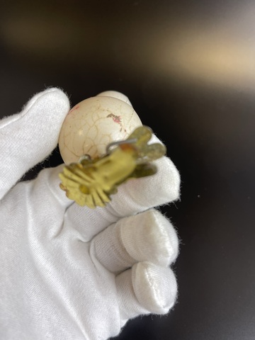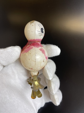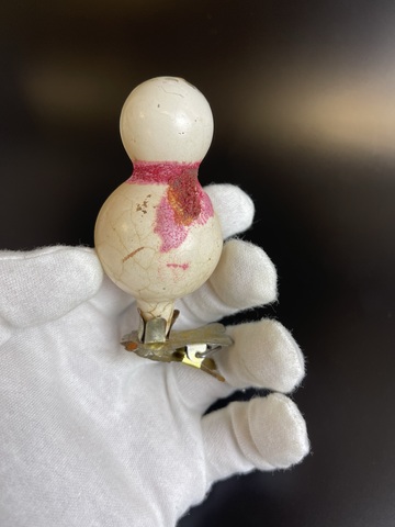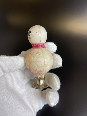 Ёлочная игрушка зайчик на прищепке, стекло, винтаж СССР 1950-1970 гг. Имеются следы времени и использования, под прищепкой небольшой скол, состояние на фото