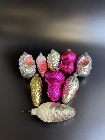 Ёлочнные игрушки набор 9 штук разные шишки, фонарики, мишка, гриб, стекло, винтаж СССР 1970-1990 гг. Состояние на фото