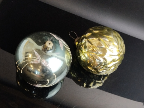 Ёлочные игрушки 2 больших шара Кремлёвский и уличный, D - 9 и 10 см, подвесные, винтаж СССР 1960-1990 гг. Состояние и комплектация на фото. Винтажные шарики на ёлку времён СССР. Ёлочные украшения в ретро стиле.