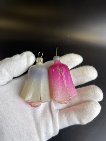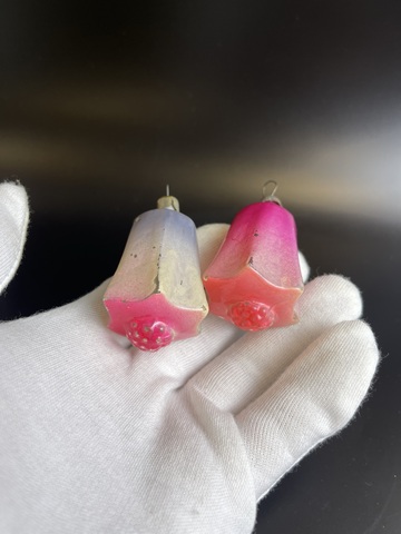 Ёлочные игрушки 2 штуки "Колокольчики" стекло, винтаж, СССР 1950-1970 гг. Состояние на фото
