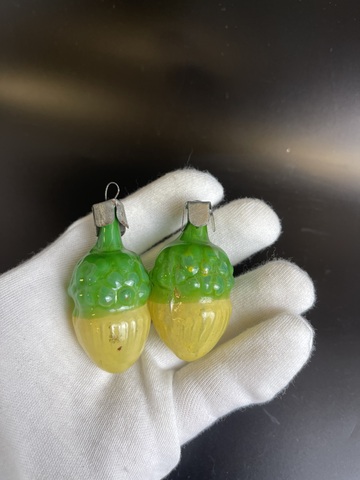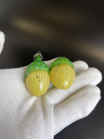 Ёлочные игрушки 2 жёлудя , винтаж, стекло СССР 1950-1970 гг. Высота- 6 см. Состояние на фото