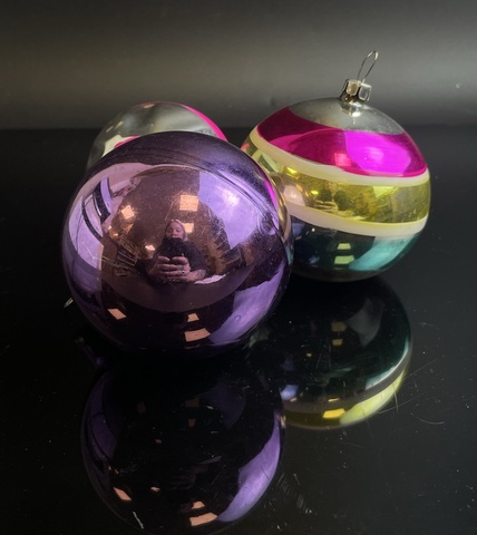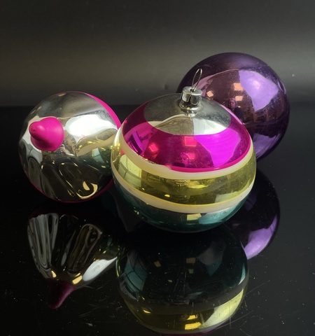 Ёлочные игрушки 3 шариков, стекло, роспись, подвесные, винтаж СССР 1960-1980 гг