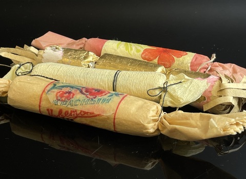 Ёлочные игрушки 4 конфеты из бумаги, фольги и картона, советского времени, винтаж СССР 1950-1970 гг