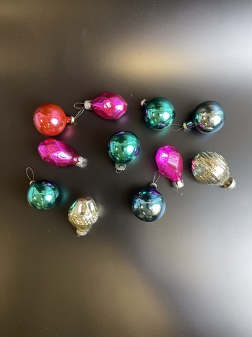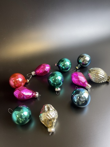 Ёлочные игрушки набор 11 штук маленьких шариков, стекло, винтаж, СССР 1960-1990 гг. Состояние на фото
