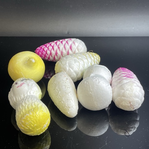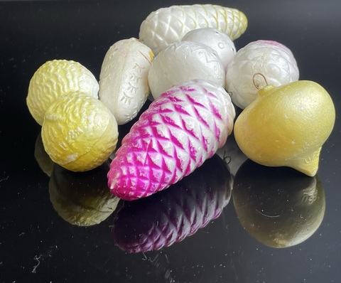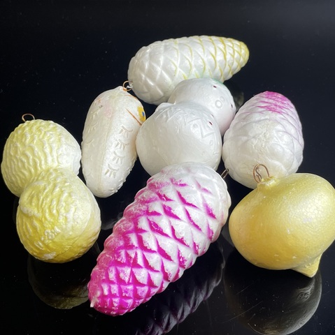 Ёлочные игрушки набор 7 разных из пенопласта, шишки, снеговик, репка и др, винтаж СССР 1960-1980 гг