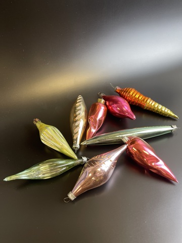 Ёлочные игрушки набор 9 штук сосульки разные, стекло, винтаж, СССР 1960-1990 гг. Состояние на фото
