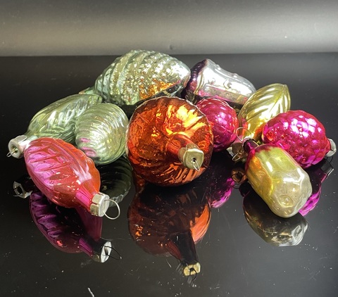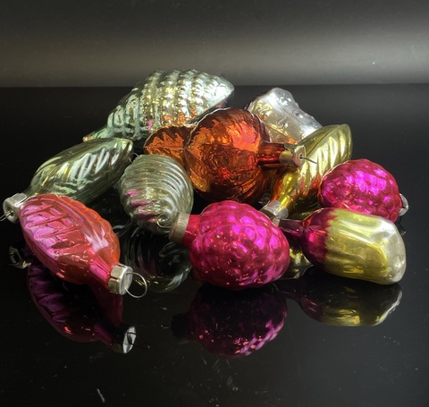 Ёлочные игрушки набор из 10 разных колокольчик, малинка, листик, тюльпан и др, стекло, подвесные, винтаж СССР 1960-1980 гг