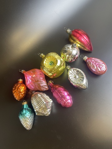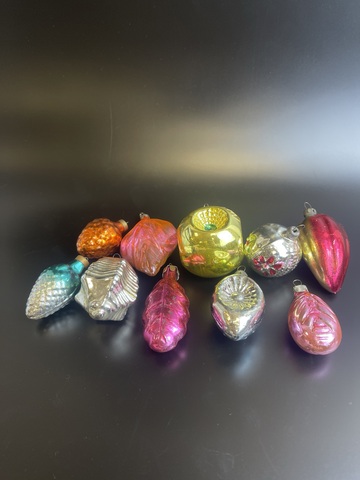 Ёлочные игрушки набор из 10 разных штук, клубничка, шишка, шарики и др, стекло, винтаж СССР 1960-1990 гг. Комплектация и состояние на фото