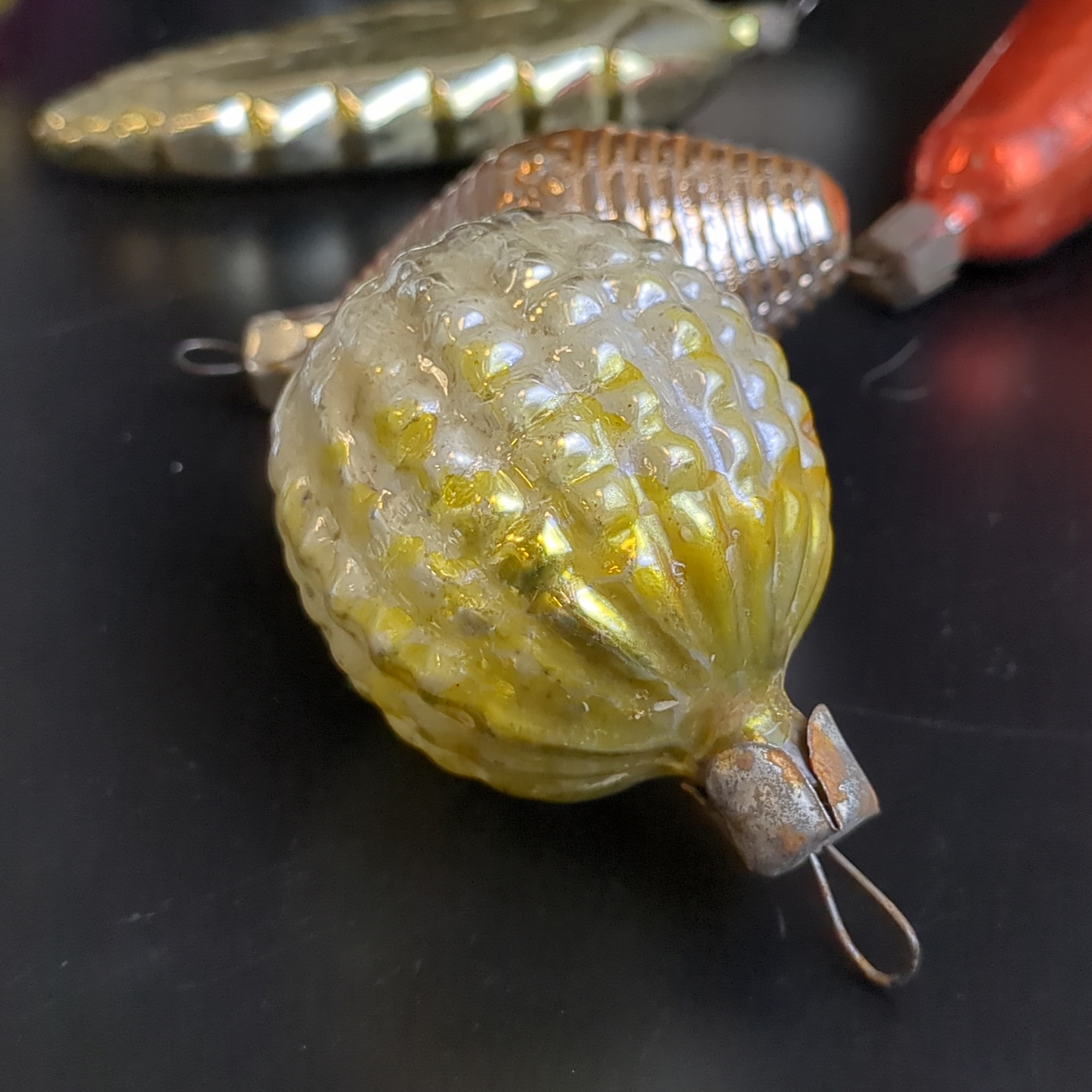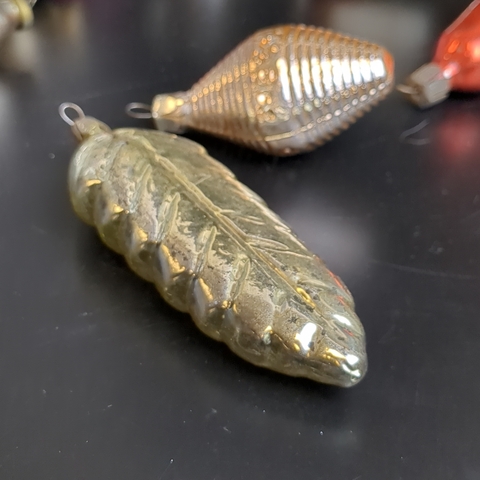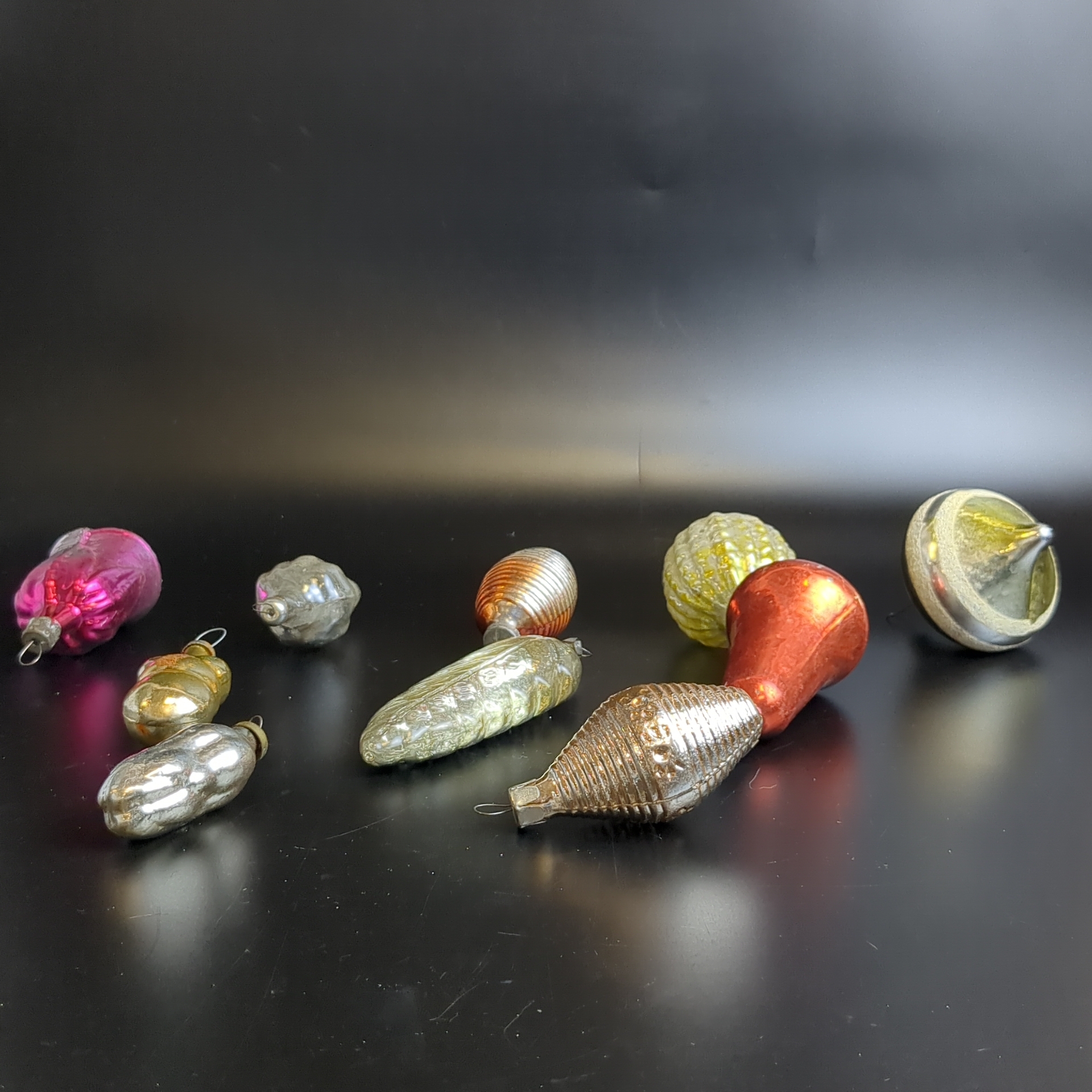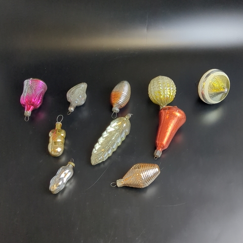 Ёлочные игрушки набор из 10 разных штук, колокольчики, шарики, листик, фигурки, стекло, подвесные, ручная роспись, винтаж СССР 1960-1980 гг