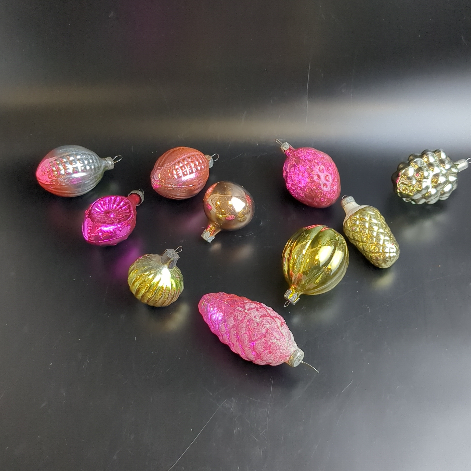 Ёлочные игрушки набор из 10 разных штук, малинки, колокольчик и др, стекло, подвесные, винтаж времён СССР 1960-1990 гг. Советские ёлочные игрушки и украшения. Состояние и комплектация на фото.