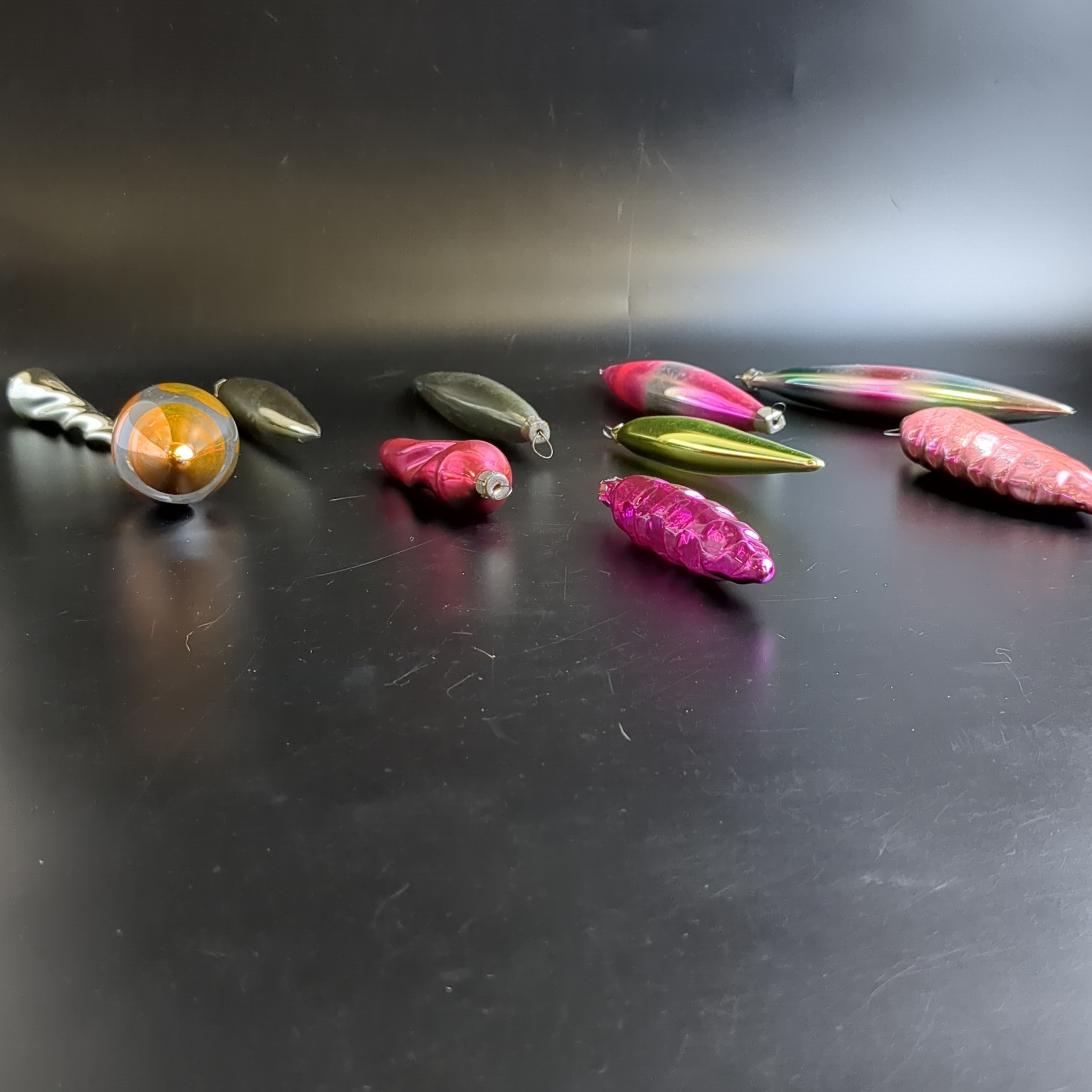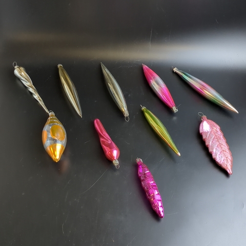 Ёлочные игрушки набор из 10 разных ярких сосулек, стекло, подвесные, винтаж времён СССР 1960-1980 гг. Советские ёлочные игрушки и украшения. Состояние и комплектация на фото, могут присутствовать незначительные неровности и сколы, закрытые металлическим подвесом (под подвесом).