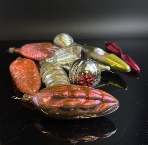 Ёлочные игрушки набор из 10 штук разных сосульки, шарики и др, стекло, подвесные, винтаж СССР 1960-1980 гг